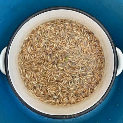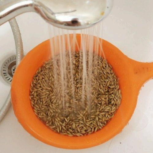 Після доби більшість зерна опуститься на дно, а зверху спливе сміття, неякісні зерна та лушпиння. Цей шар потрібно зібрати та видалити, потім злити воду.